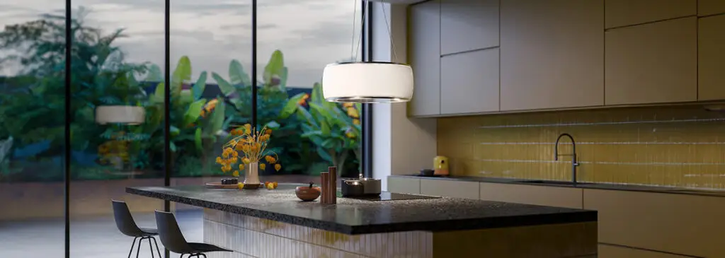 Ceiling hoods are aesthetically pleasing options that seamlessly integrate into modern kitchen designs. They are installed directly into the ceiling and are particularly suitable when kitchen space is limited. These range hoods without air exhaust not only offer powerful air cleaning but are also extremely unobtrusive.